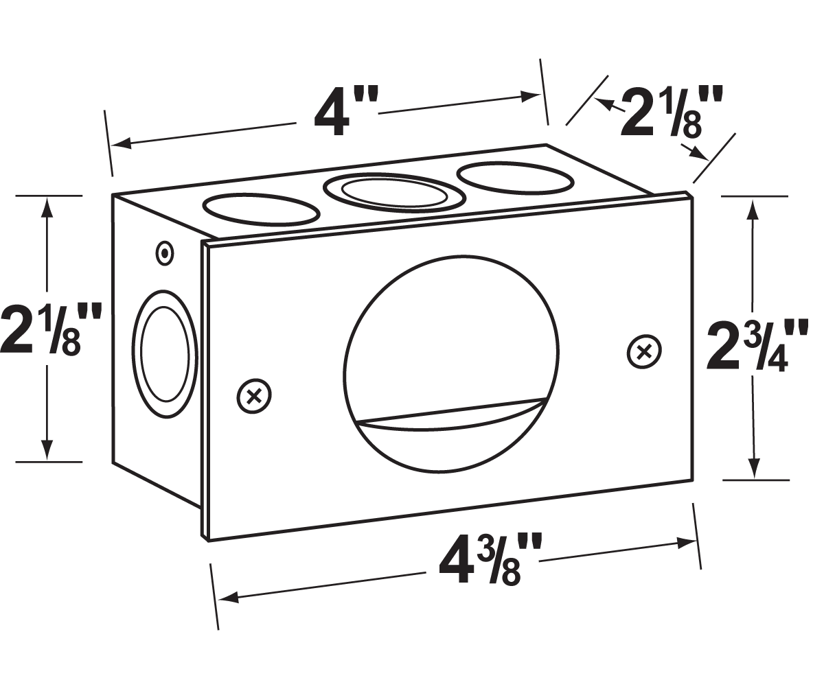 Mounting : Recessed mount back box, with 3x1/2" NPT inlets. Best used in concrete, brick and other masonry surfaces.