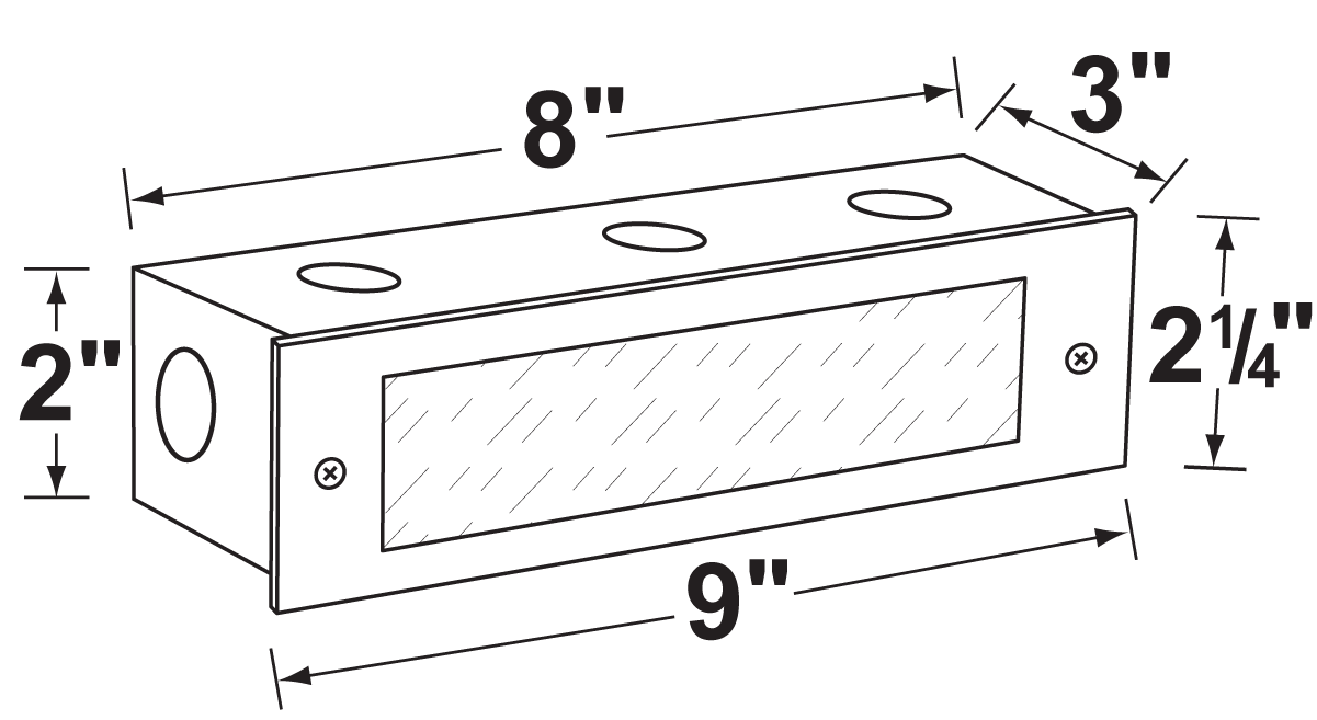 Aluminum Lensed Brick Light with steel box and a frosted lens, face plate finished in Bronze, Rust, or White.
