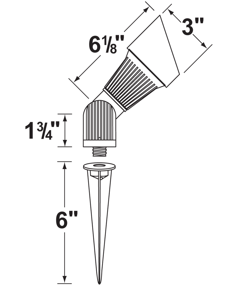 Mounting : 6” Black ABS spike with ½" NPT threaded female hub.