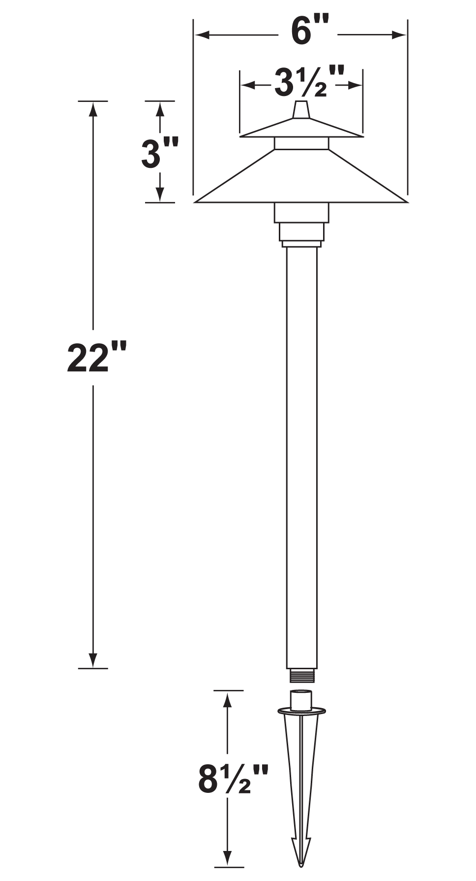18″ Aluminum Umbrella Path Light Finished in Black or Bronze. 12″ Stem also available